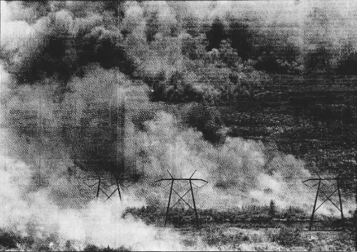 Raging brush fire near power lines at the intersection of US 27 and SR 84 after causing the blackout. From Miami Herald, May 18, 1985
