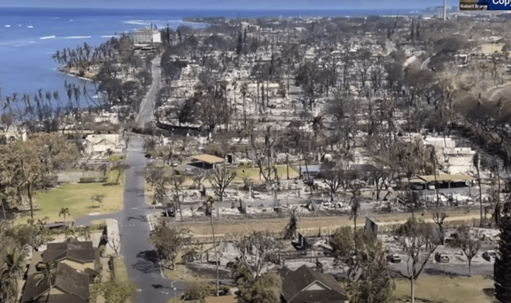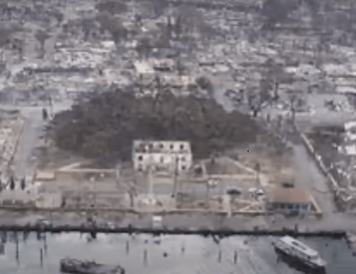 A similar kind of firestorm happened to the city of Lahaina on the island of Maui. The picture below shows the aftermath. The main road on the left is Front Street.
