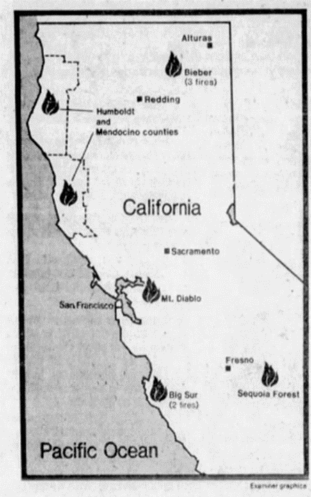The Big Sur fire that burned for three weeks in August 1977 was actually preceded by a firestorm that occurred on Mt. Diablo, the devil’s mountain, 150 miles north of Big Sur and 35 miles east of San Francisco.