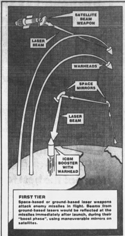 “Our national security in the future may depend on armaments far different from any we know today. . . . Beam-directed energy weapons may be used in space, and the energy directed by these weapons could travel across space with the speed of light. This would be invaluable for the interception of ICBM ballistic weapons. We have looked into the phenomena associated with this kind of weapon. We have evidence the Soviets are also interested.”